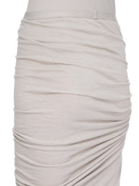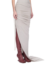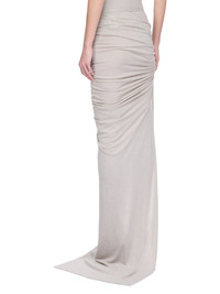 RICK OWENS FW25 CONCORDIANS ISLAND JKT IN PEARL RAININO JERSEY THIS EDFU SKIRT TRAILS FLOOR LENGTH AND HAS A LONG TRAIN. IT HAS AN ELASTICIZED WAISTBAND A TIGHT FIT. IT DRAPES AND WRAPS AROUND THE HIPS, AND GATHERS INTO A SEAM ON THE RIGHT THIGH. THE SIDE SPLIT CAN BE MODIFIED USING THE DRAWSTRING. A HIGHER, OR LOWER, SPLIT CREATES INCREASED DRAPING AND RUCHING. ITS TRAIN TAPERS TO A NARROW, FLOOR TRAILING TIP THIS MEDIUMWEIGHT AND FLUID VISCOSE AND WOOL BLEND JERSEY HAS A SOFT, WARM HANDFEEL AND A SLIGHTLY HAIRY SURFACE TEXTURE WE STRIVE TO KEEP OUR PRODUCTION AS LOCAL AS POSSIBLE. THE FULL MANUFACTURING CYCLE OF THIS PRODUCT, FROM THE MATERIAL KNITTING TO SEWING AND FINISHING, WAS UNDERTAKEN CLOSE TO OUR HOME BASE IN CONCORDIA, ITALY THIS JERSEY IS MADE FROM FSC® CERTIFIED VISCOSE AND RWS CERTIFIED WOOL COLOR: PEARL MATERIAL: 30% VISCOSE + 30% NYLON + 20% ANGORA + 20% WOOL MODEL IS 181CM TALL MODEL WEARS SIZE 40