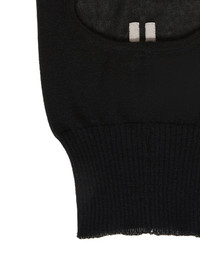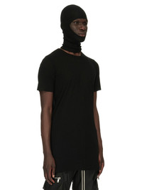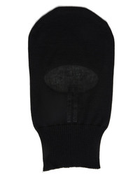 RICK OWENS FW24 PORTERVILLE SKULL IN BLACK LIGHT WEIGHT RASATO KNIT THIS SKULL IS A BALACLAVA THAT COVERS THE HEAD AND NECK. IT HAS A WIDE, ROUNDED, OPENING FOR THE EYES AND NOSE AND A WIDE RIBBED NECK THIS IS A LIGHTWEIGHT AND SOFT CLASSIC STITCH CASHMERE KNIT - COLOR: BLACK - MATERIAL: 100% CASHMERE - MODEL IS 189CM TALL - ITEMS IS AVAILABLE IN ONE SIZE