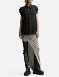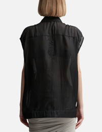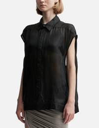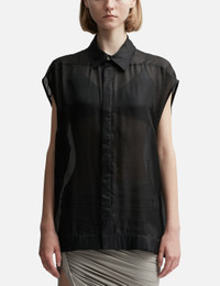 - Rick Owens - SL Jumbo Outershirt - Hip length - Oversized fit - Lightweight silk fabric - Sleeveless - Concealed snap-button placket - Classic collar - Signature level shoulder seams - Color: Black - Material: 100% Silk - See more Shirts and Clothing SIZING - Model wears size 38 - Model measures: Height 179cm, Chest 32”/81cm, Waist 23’’/58.42cm, Hip 35’’/88.9cm