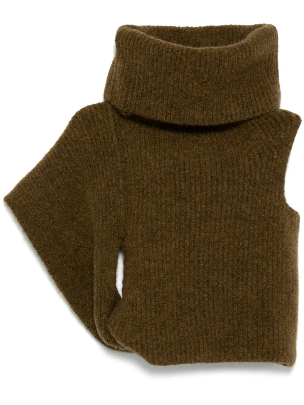 Banded T jumper Highlights - Honey green - Knitted construction - Asymmetric design - Roll neck - Sleeveless Made in Italy Composition Alpaca 48%, Polyamide 30%, Wool 20%, Elastane 2% SIZE & FIT Model measurements Height 5 ft 10 in(1.77 m) Bust/Chest 31.49 in(80 cm) Hips 35.43 in(90 cm) Waist 25.19 in(64 cm) FittingInformation Designed for a close fit throughout Made with a midweight knit, this piece offers some stretch