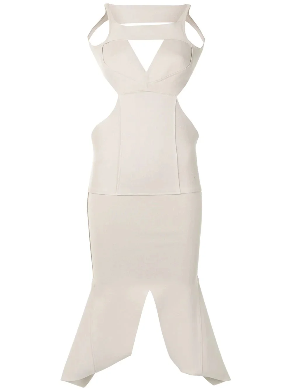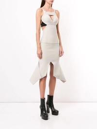 Sling double knit dress Grey Sling double knit dress from Rick Owens featuring a sleeveless design, stitched panels, a key-hole neckline, a backless design, a flared skirt and a mid-length. Made in Italy Composition Viscose 63%, Polyester 27%, Nylon 7% SIZE & FIT Model measurements Height 5 ft 10 in(1.78 m) Bust/Chest 33.46 in(85 cm) Hips 36.22 in(92 cm) Waist 23.22 in(59 cm) FittingInformation This piece fits true to size. We recommend you get your regular size Cut for a slim fit Made with a heavyweight fabric Washing instructions Dry Clean Only