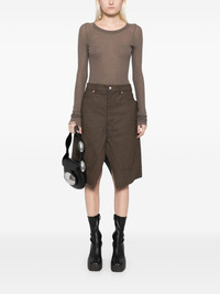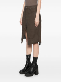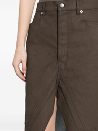 Slivered skirt Highlights - Bean brown - Cotton blend - Denim - Coated finish - Front button and zip fastening - Logo-engraved buttons - Silver-tone hardware - Panel detailing - Raised seam detail - Belt loops - Two side slash pockets - Two rear patch pockets - Raw-cut finish - Knee-length Made in Italy Composition Cotton 91%, Elastane 6%, Rubber 3% SIZE & FIT Model measurements Height 5 ft 9 in(1.76 m) Bust/Chest 31.1 in(79 cm) Hips 35.03 in(89 cm) Waist 24.4 in(62 cm) FittingInformation This midi-length skirt is intended to be worn just below the waist The tie fastening gives an adaptable and personalised fit Made from a midweight stretch fabric, this piece offers elasticity and flexibility when worn