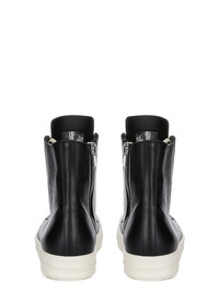 RICK OWENS FW25 CONCORDIANS SNEAKERS IN BLACK/MILK/MILK FULL GRAIN COW LEATHER THESE SNEAKERS ARE ABOVE-ANKLE HEIGHT AND FEATURE SEVEN EYELETS, LACES, A ZIPPER ON THE INSIDE ANKLE FOR EASY FASTENING, TOE CAPS AND SHARK-TOOTHED BUMPER SOLES. THIS MEDIUMWEIGHT FULL GRAIN COW LEATHER HAS A FLAT AND MATTE SURFACE FINISH AND IS SPECIFICALLY TANNED FOR SHOES WITH AN ABRASION-RESISTANT FINISH. THIS TANNERY IS LWG CERTIFIED WITH A BRONZE RATING. COLOR: BLACK/MILK/MILK MATERIAL: UPPER 100% COW LEATHER TOE 100% CALF LEATHER LINING 100% CALF LEATHER INSOLE 100% CALF LEATHER SOLE 100% THERMOPLASTIC RUBBER SOLE HEIGHT 3.5CM