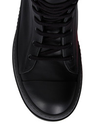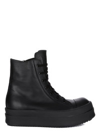 RICK OWENS SS25 HOLLYWOOD MEGA BUMPER SNEAKS IN BLACK/BLACK/BLACK FULL GRAIN CALF LEATHER THESE MEGA BUMPER SNEAKS ARE ABOVE-ANKLE HEIGHT AND FEATURE SEVEN EYELETS, LACES, A ZIPPER ON THE INSIDE ANKLE FOR EASY FASTENING, TOE CAPS AND DOUBLE HEIGHT, SHARK-TOOTHED MEGA BUMPER SOLES THIS MEDIUMWEIGHT FULL GRAIN CALF LEATHER HAS A FLAT AND MATTE SURFACE FINISH AND IS SPECIFICALLY TANNED FOR SHOES WITH AN ABRASION-RESISTANT FINISHTHIS TANNERY IS LWG CERTIFIED WITH A BRONZE RATING COLOR: BLACK/BLACK/BLACK MATERIAL: UPPER 100% COW LEATHERTOE 100% CALF LEATHERLINING 100% CALF LEATHER INSOLE 100% CALF LEATHERSOLE 100% THERMOPLASTIC RUBBER
