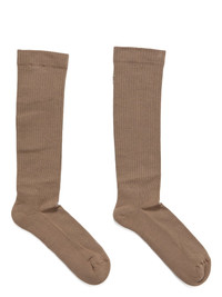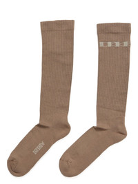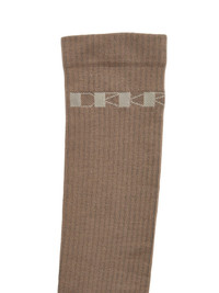 DRKSHDW FW25 CONCORDIANS DRKSHDW KNEE HIGH SOCKS IN DIRTY PEARL/PEARL COTTON KNIT THESE DRKR KNEE HIGH SOCKS FINISH JUST BELOW KNEE LENGTH. THEY FEATURE THE WORD DRKSHDW ON THE FOOT OF THE RIGHT SOCK AND THE DRKR LOGO ON THE UPPER LEFT LEG, IN KNIT JACQUARD. THIS IS A LIGHTWEIGHT AND SOFT CLASSIC STITCH COTTON KNIT COLOR: DIRTY PEARL/PEARL MATERIAL: 60% COTTON + 30% POLYAMIDE + 10% ELASTANE