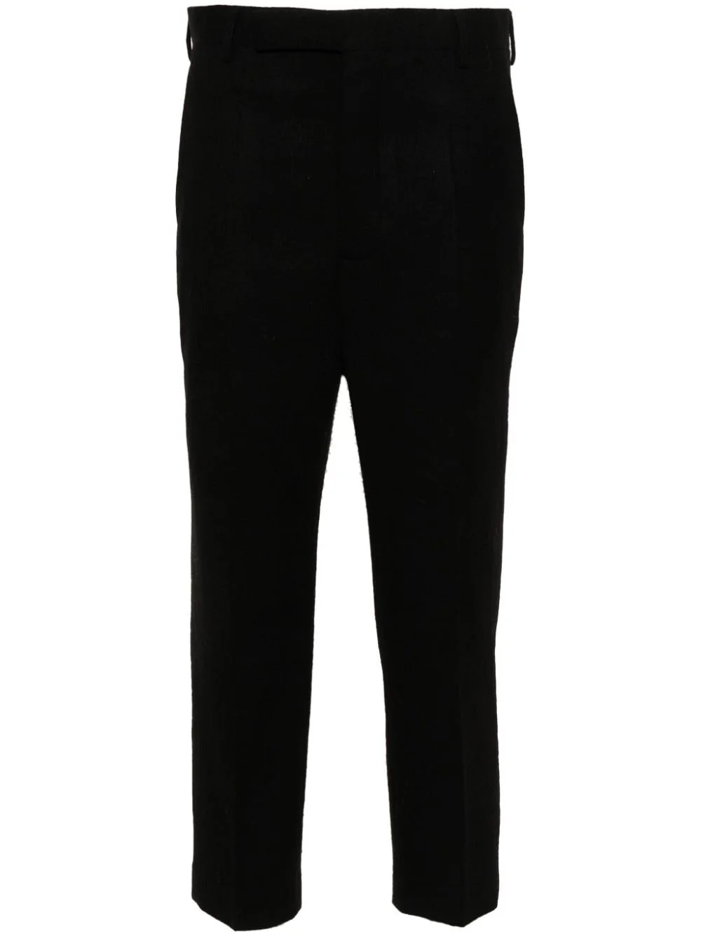 Astaires cropped trousers Highlights - Jet black - Virgin wool - Tonal stitching - Pleat detailing - Belt loops - Concealed front fastening - Tapered leg - Two side slash pockets - Two rear button-fastening jetted pockets - Straight hem - Cropped Made in Italy Composition Outer: Virgin Wool 100%, Buffalo Horn 100% Lining: Cupro 100% SIZE & FIT Model measurements Height 5 ft 11 in(1.8 m) Bust/Chest 30.7 in(78 cm) Hips 35.03 in(89 cm) Waist 24.4 in(62 cm) FittingInformation Designed for a tapered fit, these trousers allow for a close fit at the waist and a loose unrestricted fit over the leg with a closer fit towards the ankle Cropped in length Made from a midweight non-stretch fabric This piece fits true to size – take your usual size
