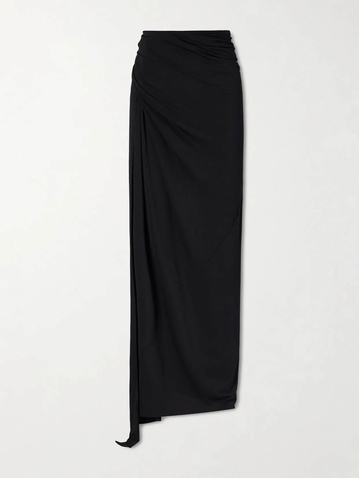 Rick Owens' skirt makes a bold statement in true house style. Crafted from stretch-jersey, it features a daring front slit and falls to a floor-length hem. Style it with chunky boots.