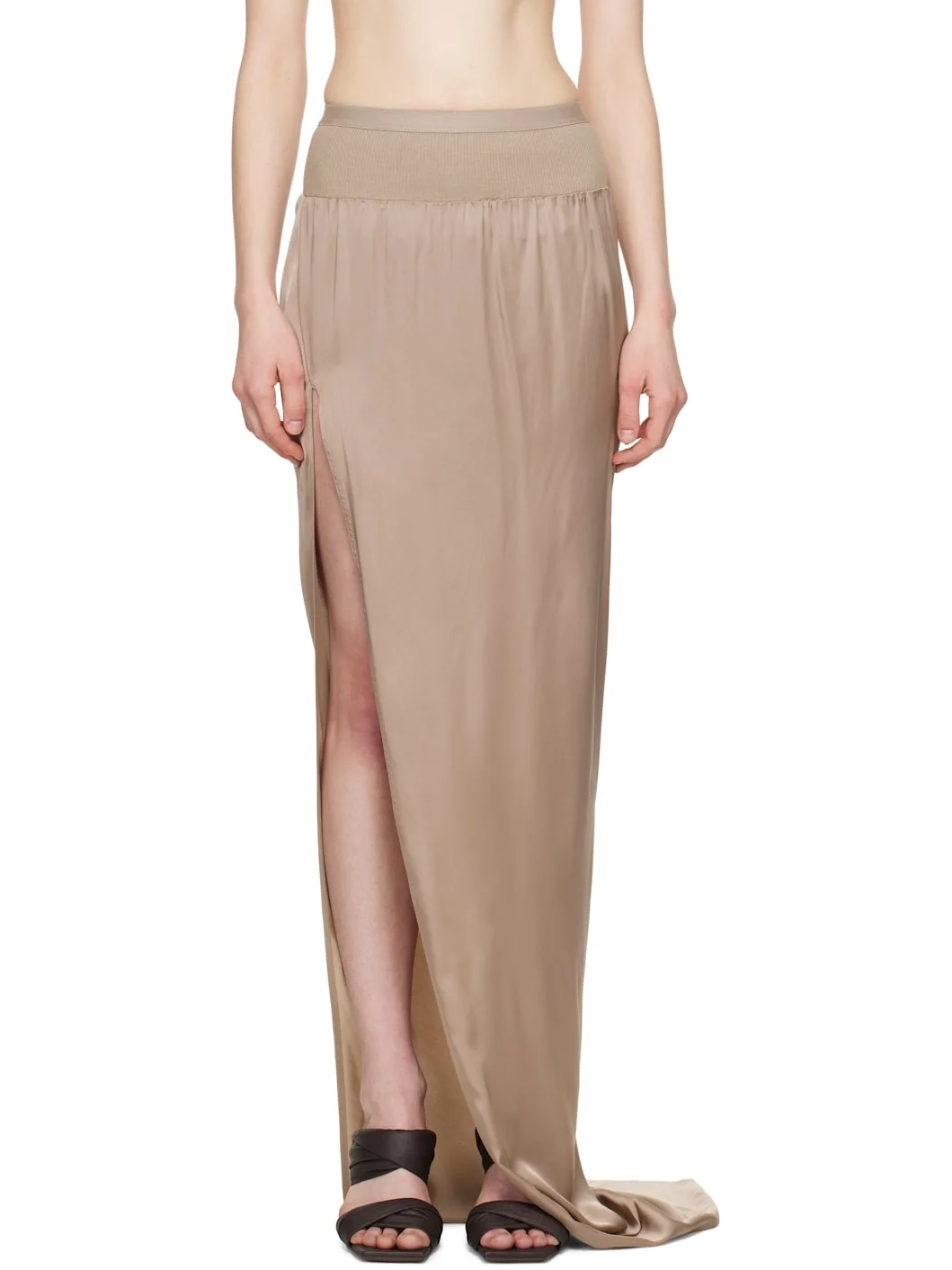 Acetate- and viscose-blend washed charmeuse maxi skirt. · Rib-knit panel at elasticized waistband · Slit at side seam · Extended train at back hem · Unlined Supplier color: Flesh Body 1: 61% acetate, 39% viscose. Body 2: 65% cotton, 35% polyamide. Made in Italy 251232F093028