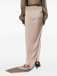 Split maxi skirt Highlights - Almond beige - Elasticated waistband - Ribbed waistband - Side slit Made in Italy Composition Cotton 65%, Acetate 61%, Viscose 39%, Polyamide 35% SIZE & FIT Model measurements Height 5 ft 10 in(1.77 m) Bust/Chest 31.1 in(79 cm) Hips 34.64 in(88 cm) Waist 24.01 in(61 cm) FittingInformation This maxi-length skirt is intended to be worn high on the waist The elasticated waist allows for a comfortable fit Made from a lightweight non-stretch fabric