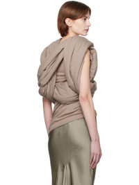 Padded GOTS-certified organic cotton jersey top. · Twisted detailing throughout · Asymmetrical and layered construction Supplier color: Taupe Body: 100% organic cotton. Fill: 100% polyester. Made in Italy 251232F111042