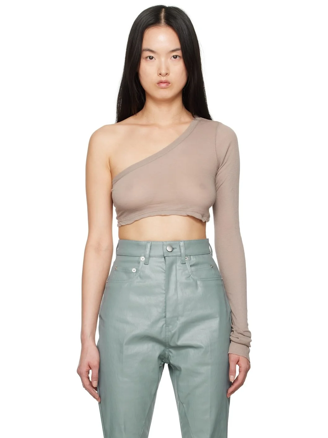 GOTS-certified organic cotton gauze jersey T-shirt. · Single-shoulder construction · Rib-knit neck and cuff · Cropped hem · Central seam at back Supplier color: Taupe 100% cotton. Made in Italy 251232F110030