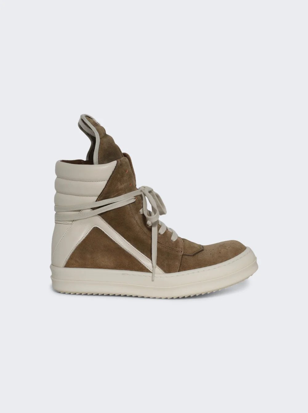 Details - High top sneakers in suede and full-grain cow leather - Extended tongue with a webbing tab - Signature geometric panels and a padded back counter - Zipper on the inside ankle for easy fastening - Shark tooth bumper sole - Sole height: 3.5cm - Material: 100% Calf Leather; Sole: 100% Thermoplastic Rubber Size Information: Vendor Color Code: Brand Style: RP01F6894 LCSUCO Designer/Brand: RICK OWENS