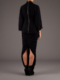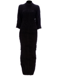 textured maxi dress Black silk dress from Rick Owens featuring a high neck, a fluffy texture, a fitted shape, three quarter length sleeves, a rear zip fastening and a cut out detail to the rear hem. Made in Italy Composition Silk 100% Lining: Modal 100% Washing instructions Dry Clean Only