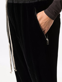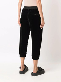three-quarter length trousers black cotton drawstring fastening waist two side slit pockets three-quarter length Made in Italy Composition Cotton 100%, Viscose 82%, Silk 18% SIZE & FIT Model measurements Height 5 ft 9 in(1.74 m) Bust/Chest 32.28 in(82 cm) Hips 35.82 in(91 cm) Waist 24.01 in(61 cm) FittingInformation This piece fits true to size. We recommend you get your regular size Designed to be fitted at the waist and hips, loose over the leg Made with a mid-weight non-stretch fabric Washing instructions Dry Clean Only