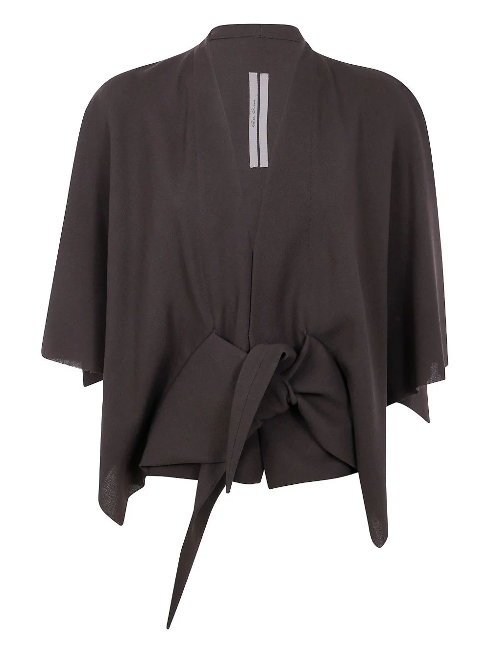 tie-front cape top Highlights - Brown - Batwing sleeves - Tie fastening - Wrap style - V-neck Made in Italy Composition Viscose 84%, Acetate 16% Washing instructions Read Manufacturer Guidelines