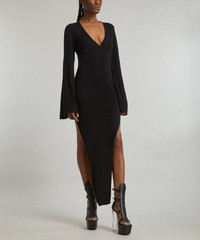Editor's Notes Perfectly translating the brand’s signature elevated grunge aesthetic, the Toga dress from Rick Owens is a sultry addition to your knitwear edit with its plunging V-neckline. Cut from wool in a knit weave, this form-fitting maxi-dress features flared long-sleeves and side-slits for a fluid finish. Features Knitted maxi dress Woollen knit weave Slim-fit Long flared sleeves V-neckline Side-slits Made in Italy SIZE & FIT Model is 175cm/5'9"; Chest: 76cm; Waist: 63cm; Hip: 86cm and wears a size 8 Composition & Care 100% Wool Dry clean only About Rick Owens Rick Owens launched his eponymous label in Hollywood in 1994, and the brand’s dark glamour-meets-grunge look soon seduced consumers across the globe. Now based out of a dilapidated mansion in the centre of Paris, the brand is seemingly unaware of trends and remains loyal to a raw, almost brutal, aesthetic. Creating barbaric elegance from meticulous draping of softly-worn cashmere and silk, Rick Owens offers up wearable, avant-garde womenswear.