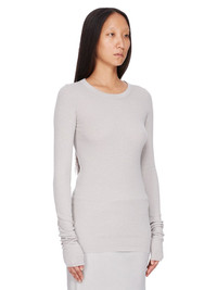 RICK OWENS FW25 CONCORDIANS RIB LS T IN PEARL RAININO RIB JERSEY THIS RIB LS T IS BELOW HIP LENGTH WITH A SLIM FIT AND LONG SLEEVES. IT HAS A RIBBED ROUND NECK, RAW CUT HEM AND CUFFS, AND FEATURES THE SIGNATURE SINGLE SEAM RUNNING DOWN CENTRE BACK SPINE THIS MEDIUMWEIGHT AND FLUID VISCOSE AND WOOL BLEND RIB JERSEY HAS A SOFT, WARM HANDFEEL AND A SLIGHTLY HAIRY SURFACE TEXTURE WE STRIVE TO KEEP OUR PRODUCTION AS LOCAL AS POSSIBLE. THE FULL MANUFACTURING CYCLE OF THIS PRODUCT, FROM THE MATERIAL KNITTING TO SEWING AND FINISHING, WAS UNDERTAKEN CLOSE TO OUR HOME BASE IN CONCORDIA, ITALY THIS JERSEY IS MADE FROM FSC® CERTIFIED VISCOSE AND RWS CERTIFIED WOOL COLOR: PEARL MATERIAL: 30% VISCOSE + 30% NYLON + 20% ANGORA + 20% WOOL MODEL IS 181CM TALL MODEL WEARS SIZE 40