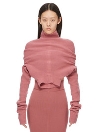 RICK OWENS FW24 PORTERVILLE RUNWAY HEADON DBL LUPETTO IN THULIAN LIGHT RECYCLED CASHMERE THIS HEADON DBL LUPETTO IS ABOVE HIP LENGTH, WITH LONG SLEEVES. IT HAS A WIDE LUPETTO NECK, LEVEL SHOULDER SEAMS AND A KNIT LINE RUNNING DOWN THE CENTRE FRONT AND BACK. IT HAS A SECOND NECK HOLE POSITIONED IN THE LOWER BACK, AND CAN BE WORN OVER THE HEAD, CREATING A CONVERTIBLE SWEATER, WITH LOW ARMHOLES AND AN OPEN BACK THIS LIGHTWEIGHT CASHMERE KNIT HAS A CLASSIC STITCH AND A SOFT HANDFEEL. IT IS MADE USING CERTIFIED RECYCLED CASHMERE BECAUSE IT FINDS A PURPOSE FOR RAW MATERIALS THAT WOULD OTHERWISE BE DISCARDED - COLOR: THULIAN - MATERIAL: 97% CASHMERE + 3% WOOL - MODEL IS 181CM TALL - MODEL WEARS SIZE S