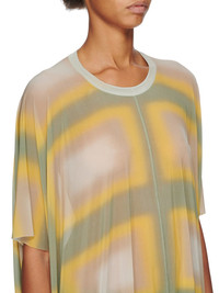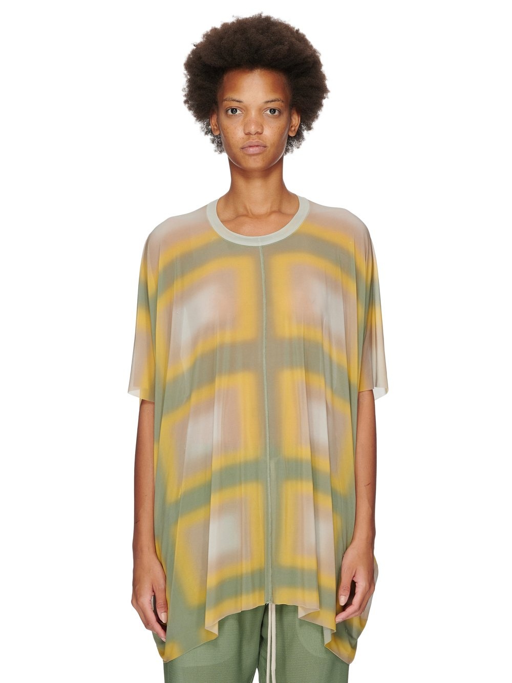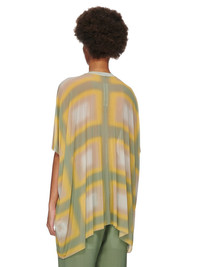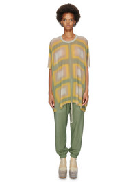 RICK OWENS SS23 EDFU MINERVA T IN MOSS LIDO PLAID PRINTED STRETCH CUPRO JERSEY THIS MINERVA T IS BELOW HIP LENGTH WITH A VOLUMINOUS DRAPED OVERSIZE FIT. IT HAS A LOOSE ROUND NECK, WIDE HALF SLEEVES WHICH REACH BELOW THE ELBOW, AND A HEMLINE WHICH DIPS SLIGHTLY AT THE SIDES. IT HAS A RAW CUT HEM AND SLEEVES. IT HAS THE SIGNATURE SINGLE SEAM RUNNING DOWN CENTRE BACK SPINE AND FRONT THIS STRETCH CUPRO JERSEY IS DIGITAL PRINTED WITH OUR MULTI-COLORED LIDO PLAID DEGRADE MOTIF. WE CHOSE CUPRO FOR THIS PRODUCT BECAUSE CUPRO FIBER IS BIODEGRADABLE AND 100% PLANT BASED. AS IT’S MADE FROM COTTON WASTE, CUPRO HELPS FIND A PURPOSE TO FIBERS THAT WOULD OTHERWISE BE DISCARDED - COLOR: MOSS PLAID - MATERIAL: 92% CUPRO + 8% ELASTANE - MODEL IS WEARING SIZE 40 - MODEL IS 181 CM TALL