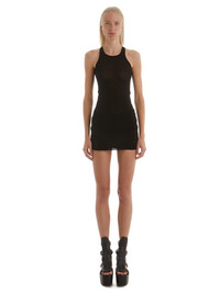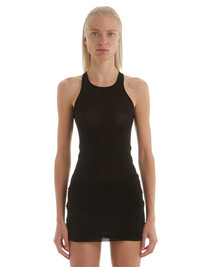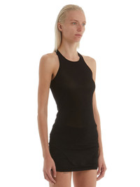 RICK OWENS SS22 FOGACHINE RUNWAY BASIC RIB TANK IN STRETCH CUPRO JERSEY THIS BASIC RIB TANK IS HIP LENGTH WITH A ROUNDED RAW CUT HEM THAT DIPS IN FRONT AND BACK. IT HAS A ROUND NECKLINE AND THIN SHOULDER STRAPS THAT FLOW INTO AN SLIGHT RACER BACK. IT FEATURES THE SIGNATURE SINGLE SEAM RUNNING DOWN THE CENTRE BACK SPINE A STRETCHY AND DRAPEY LIGHTWEIGHT JERSEY WITH A COOL TOUCH. WE CHOSE CUPRO FOR THIS PRODUCT BECAUSE CUPRO FIBER IS BIODEGRADABLE AND 100% PLANT BASED. AS IT’S MADE FROM COTTON WASTE, CUPRO HELPS FIND A PURPOSE TO FIBERS THAT WOULD OTHERWISE BE DISCARDED - MATERIAL:92% NYLON + 8% ELASTANE