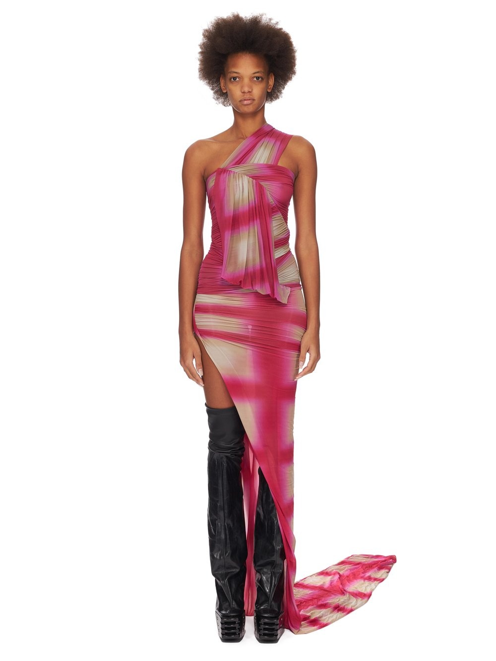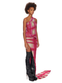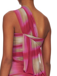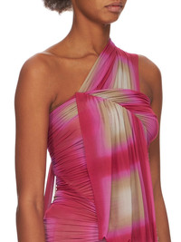 RICK OWENS SS23 EDFU RUNWAY EDFU TOP IN LIDO PLAID PRINTED STRETCH CUPRO JERSEY THIS EDFU TOP IS BELOW HIP LENGTH. IT HAS A DRAPED ASYMMETRICAL NECKLINE WITH SINGLE RIGHT SHOULDER AND TIGHT FITTING RUCHED BODY. IT FEATURES A GEOMETRIC DRAPED SHAPE RUNNING ACROSS THE RIGHT BREAST, CUTTING ON THE DIAGONAL TO TRAVEL DOWN THE BODY, THEN AROUND THE RIGHT HIP. ITS BACK IS OPEN ON THE LEFT SHOULDER AND FEATURES RUCHING AND DRAPING THIS LIGHTWEIGHT AND STRETCHY JERSEY HAS A COOL TOUCH AND IS DIGITAL PRINTED WITH OUR MULTI-COLORED LIDO PLAID DEGRADE MOTIF. IT IS MADE USING CUPRO WHICH IS BIODEGRADABLE AND 100% PLANT BASED. AS IT’S MADE FROM COTTON WASTE, CUPRO HELPS FIND A PURPOSE TO FIBERS THAT WOULD OTHERWISE BE DISCARDED - COLOR: FUCHSIA PLAID - MATERIAL: 92% CUPRO + 8% ELASTANE - MODEL IS WEARING SIZE 40 - MODEL IS 181 CM TALL