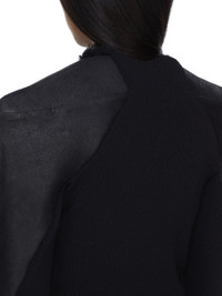RICK OWENS FW25 CONCORDIANS RUNWAY REVERSIBLE GIRDERED PULL IN BLACK CURLY SHEARLING THIS REVERSIBLE GIRDERED PULL IS HIP LENGTH WITH EXTRA LONG SLEEVES. IT HAS A RIB KNIT BODY AND SLEEVES AND WIDE, GIRDERED TATLIN SHOULDERS IN CONTRAST LEATHER. IT IS REVERSIBLE AND FEATURES A CURLY SHEARLING INNER SIDE. THIS HEAVYWEIGHT SHEARLING LAMB LEATHER HAS A WAXY NAPPA FINISH AND A SOFT NATURAL FUR. TANNED IN THE TUSCANY AREA OF ITALY, THESE SHEARLING MERINO HIDES ARE OF SPANISH ORIGIN, THE UNIQUE THICK FUR OF THESE ANIMALS MAKE THEM PERFECT FOR SHEARLING. BECAUSE THE HAIR IS NATURAL, THERE WILL BE VARIATIONS IN HAIR LENGTH AND TEXTURE, MAKING EACH PIECE UNIQUE. THIS TANNERY IS LWG CERTIFIED WITH A SILVER RATING. COLOR: BLACK MATERIAL: 100% LAMB SHEARLING REAL FUR MODEL IS 181CM TALL MODEL WEARS SIZE 40