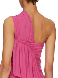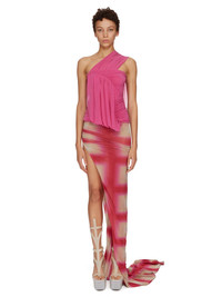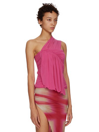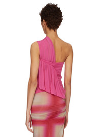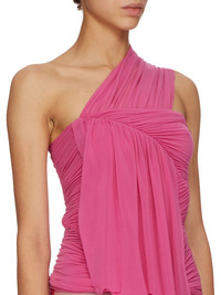 RICK OWENS SS23 EDFU RUNWAY EDFU TOP IN STRETCH CUPRO JERSEY THIS EDFU TOP IS BELOW HIP LENGTH. IT HAS A DRAPED ASYMMETRICAL NECKLINE WITH SINGLE RIGHT SHOULDER AND TIGHT FITTING RUCHED BODY. IT FEATURES A GEOMETRIC DRAPED SHAPE RUNNING ACROSS THE RIGHT BREAST, CUTTING ON THE DIAGONAL TO TRAVEL DOWN THE BODY, THEN AROUND THE RIGHT HIP. ITS BACK IS OPEN ON THE LEFT SHOULDER AND FEATURES RUCHING AND DRAPING THIS LIGHTWEIGHT JERSEY IS STRETCHY AND FLUID WITH A COOL TOUCH. IT IS MADE USING CUPRO WHICH IS BIODEGRADABLE AND 100% PLANT BASED. AS IT’S MADE FROM COTTON WASTE, CUPRO HELPS FIND A PURPOSE TO FIBERS THAT WOULD OTHERWISE BE DISCARDED - COLOR: HOT PINK - MATERIAL: 92% CUPRO + 8% ELASTANE - MODEL IS WEARING SIZE 40 - MODEL IS 181 CM TALL