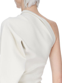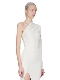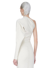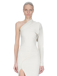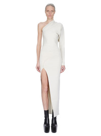 RICK OWENS SS25 HOLLYWOOD PILLAR SKIRT IN DINGE STRETCH VISCOSE KNIT THIS ONE SLEEVE TOP IS HIP LENGTH WITH A TIGHT FIT. IT HAS AN ASYMMETRICAL NECKLINE, AND DRAPES, VERY SLIGHTLY, ACROSS THE CHEST, BALLOONING INTO A DRAPED LEFT SHOULDER WITH A SINGLE LONG SLEEVE AND A KNIT BAND WAISTBAND THIS MEDIUMWEIGHT VISCOSE KNIT IS COMPACT WITH A STRETCHY AND DRY HANDFEEL. IT IS MADE WITH ECOVERO CERTIFIED VISCOSE WHICH ENSURES THAT THE FIBERS ARE PRODUCED FROM RESPONSIBLY MANAGED PLANTATIONS AND NO DEFORESTATION OCCURS COLOR: DINGE MATERIAL: 63% VISCOSE + 27% POLYESTER + 7% NYLON + 3% ELASTANE MODEL IS 181CM TALL MODEL WEARS SIZE S