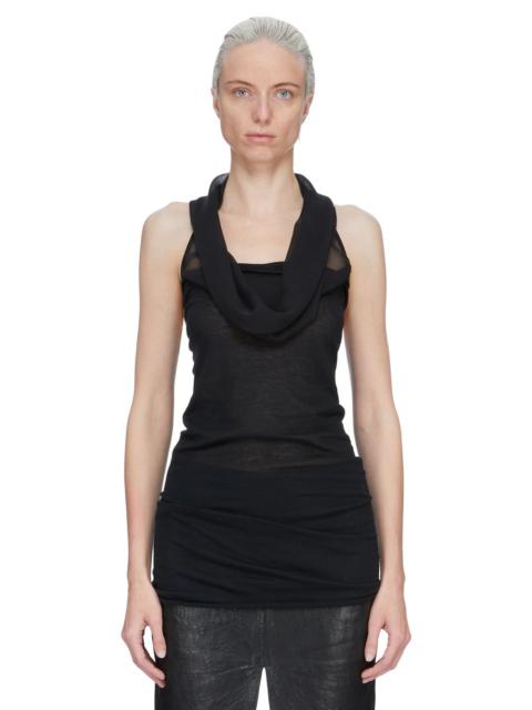 RICK OWENS SS26 TEMPLE SUNBURN HALTER IN PEARL UNSTABLE COTTON AND SILK CHIFFON THIS SUNBURN HALTER TOP IS BELOW HIP LENGTH AND IS SLEEVELESS. IT IS BODY HUGGING AND FEATURES A LONG, DRAPING, COWL NECK AT FRONT THAT FINISHES IN A HALTER NECK AT BACK THIS IS A COMBINATION OF UNSTABLE COTTON AND SILK CHIFFON THIS LIGHTWEIGHT COTTON JERSEY IS SEMI-TRANSPARENT WITH A SOFT HANDFEEL THIS JERSEY IS MADE USING GOTS CERTIFIED ORGANIC COTTON WHICH MEANS THE NATURAL FIBER IS GROWN WITHOUT HARMFUL CHEMICALS, LEAVING OUR SOIL, AIR AND WATER CLEANER FROM CONTAMINATES WE STRIVE TO KEEP OUR PRODUCTION AS LOCAL AS POSSIBLE. THE FULL MANUFATURING CYCLE OF THIS PRODUCT, FROM THE MATERIAL KNITTING TO SEWING AND FINISHING, WAS UNDERTAKEN CLOSE TO OUR HOME BASE IN CONCORDIA, ITALY COLOR: PEARL MATERIAL:100% COTTON COLLAR 100% SILK MODEL IS 181CM TALL MODEL WEARS SIZE 40