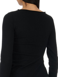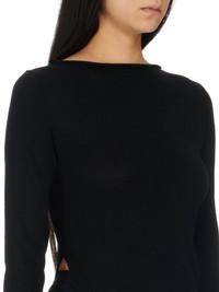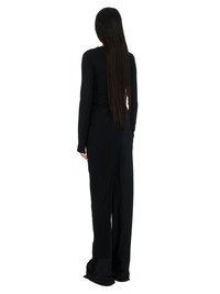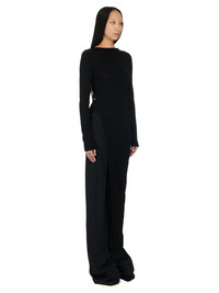 RICK OWENS FW23 LUXOR EASY LONG TOP IN BLACK LIGHTWEIGHT RASATO KNIT THIS EASY LONG TOP IS ANKLE LENGTH WITH LONG SLEEVES. IT HAS A BOAT NECK, AND A SPLIT THAT STARTS, WAIST-HEIGHT, ON THE RIGHT SIDE BODY, WITH A SKIRT THAT TAPERS DOWN ACROSS THE BODY TO THE HEM THIS IS A LIGHTWEIGHT AND SOFT CLASSIC STITCH WOOL KNIT - COLOR: BLACK - MATERIAL: 100% NEW WOOL - MODEL IS 181CM TALL - MODEL WEARS SIZE S