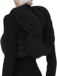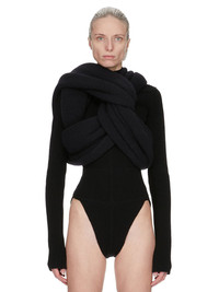 RICK OWENS FW24 PORTERVILLE TRIPLE DONUT IN BLACK ALPACA KNIT THIS TRIPLE DONUT IS THREE INTERLINKED KNIT TUBES THAT CAN BE WORN WRAPPED MULTIPLE WAYS AROUND THE BODY THIS MEDIUMWEIGHT ALPACA BLEND KNIT IS COMPACT WITH A SOFT AND BRUSHED HANDFEEL - COLOR: BLACK - MATERIAL: 48% ALPACA + 30% NYLON + 20% WOOL + 2% ELASTANE - MODEL IS 181CM TALL - ITEM IS AVAILABLE IN ONE SIZE