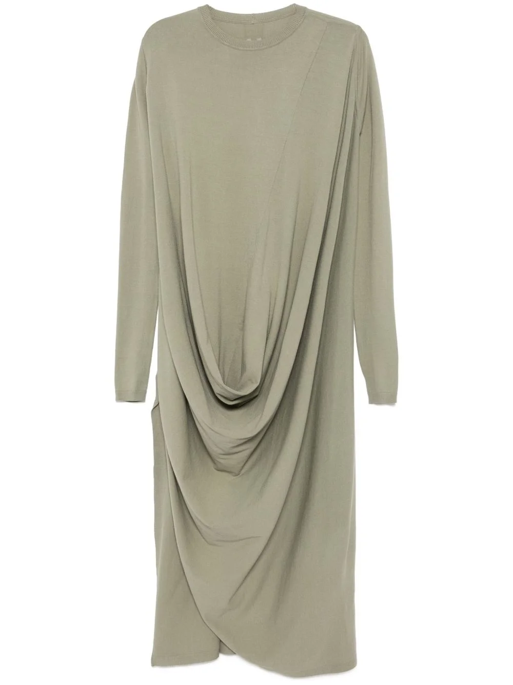 draped knitted dress Highlights - Teal green - Crew neck - Long sleeves - Side slit Made in Italy Composition Outer: Viscose 68% Polyester 32% SIZE & FIT Model measurements Height 5 ft 9 in(1.76 m) Bust/Chest 31.1 in(79 cm) Hips 35.03 in(89 cm) Waist 24.4 in(62 cm) FittingInformation Designed to be unstructured, offering a loose fit throughout Made with a midweight knit, this piece offers some stretch