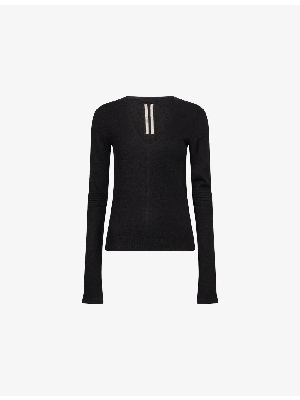 PRODUCT DETAILS - Rick Owens cashmere top - 100% cashmere - V-neck, long sleeves, ribbed elbows and trims - Hand wash - Made in Italy - True to size - Model is 5ft 10in/1.78m and wears a size small - Midweight, stretchy Ref: R04583849