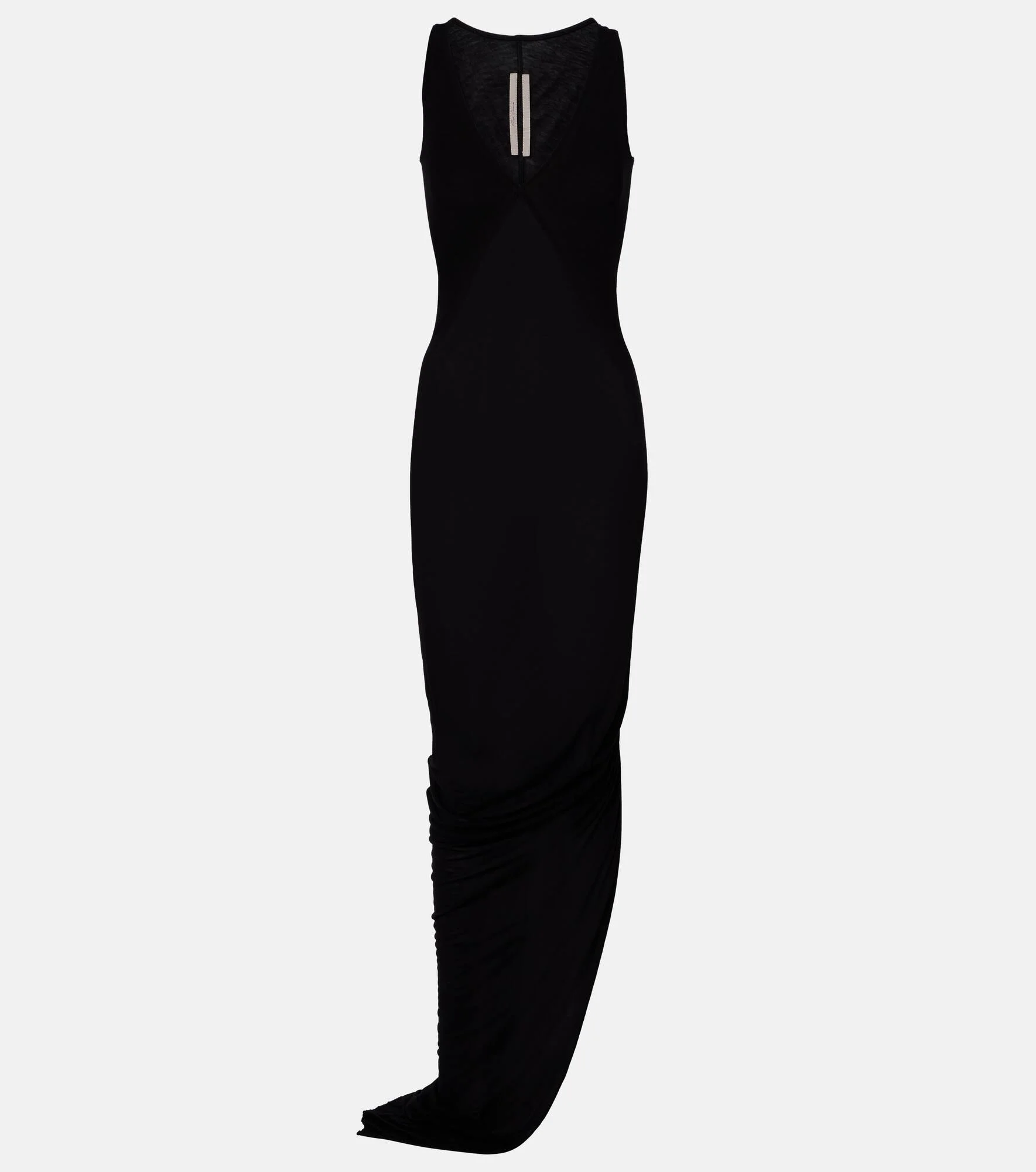 Aptly nicknamed "The Lord of Darkness", Rick Owens brings gothic and industrial inspiration to avant-garde design. The V Tank maxi dress is made from fluid jersey and features a V-neckline and draped hem. Product Details - Material: 88% viscose, 12% silk - Care instructions: hand wash - Made in Italy - Color: black - Designer color name: Black - Item number: P01137355