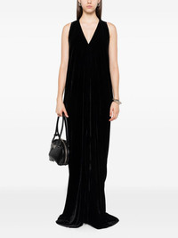 V-neck velvet maxi dress Highlights Made in Italy Composition Viscose 82%, Silk 18% SIZE & FIT Model measurements Height 5 ft 10 in(1.78 m) Bust/Chest 33.85 in(86 cm) Hips 36.61 in(93 cm) Waist 26.77 in(68 cm)
