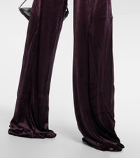 Aptly nicknamed The Lord of Darkness, Rick Owens brings gothic and industrial inspiration to avant-garde design. Expertly crafted from deep purple-hued velvet, these pants boast a streamlined silhouette and comfortable elasticated waist. Product Details - Material: 83% viscose, 17% polyamide - Care instructions: dry clean - Made in Italy - Designer color name: Deep Purple - Elasticated waistband - Item number: P00856111 Size & Fit - True to size - Elasticated waist - Mid-weight material - Stretchy fabric - Wide-leg - The model seen in the picture is 178cm-5'10" and wearing a size IT 40