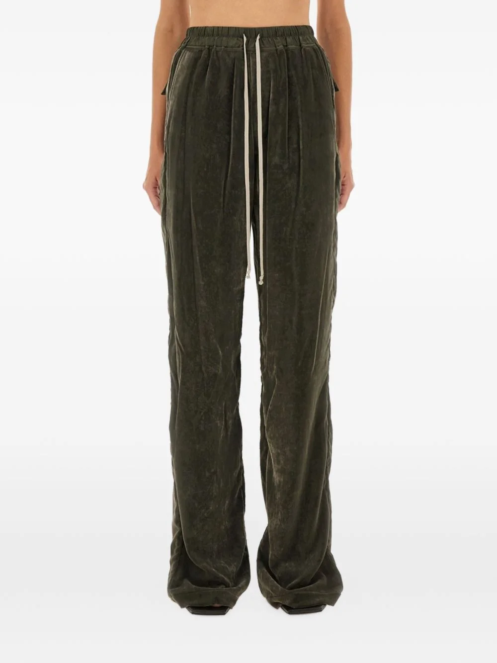 velvet-texture trousers Highlights - Green - Drawstring fastening - Back pockets Made in Italy Composition Viscose 82%, Silk 18% Washing instructions Read Manufacturer Guidelines
