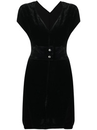 velvet v-neck short dress black velvet effect cut-out detailing belted waist embossed silver-tone buttons V-neck short sleeves fitted silhouette thigh-length Made in Italy Composition Acetate 62%, Silk 38% SIZE & FIT Model measurements Height 5 ft 9 in(1.74 m) Bust/Chest 32.28 in(82 cm) Hips 35.82 in(91 cm) Waist 24.01 in(61 cm) FittingInformation This piece fits true to size. We recommend you get your regular size Cut for a loose fit. Comes with an adjustable belt for a flexible fit at the waist Made with a lightweight non-stretch fabric Washing instructions Dry Clean Only