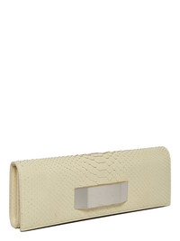 RICK OWENS FW25 CONCORDIANS RUNWAY BAGUETTE IN MILK BLEACHED PYTHON THIS BAGUETTE IS A STRUCTURED, ELONGATED, RECTANGULAR SHAPE BAG. IT HAS A FLAP WITH A PALLADIUM INDENTED EASY-GRIP BEVEL AND PIN CLOSURE. IT HAS ONE MAIN INNER POCKET WITH FLAT BACK POCKET AND A SECOND SLIM POCKET WITH 2 CARD SLOTS THIS GENUINE PYTHON SNAKESKIN HAS A WAXY AND SOFT HAND FEEL. THE NATURAL COLORATION OF THE PYTHON HAS BEEN BLEACHED OUT LEAVING ONLY THE SCALE TEXTURE VISIBLE PYTHON IS PROTECTED BY THE CITIES AGREEMENT AND REGULATIONS, WHICH MEANS EACH SKIN CAN BE TRACED BACK TO ITS ORIGIN THIS TANNERY IS LWG CERTIFIED WITH A SILVER RATING COLOR: MILK MATERIAL: 100% PYTHON LEATHER WIDTH 33CM HEIGHT 11,5CM DEPTH 4CM