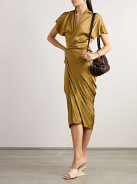 Draped satin midi wrap dress