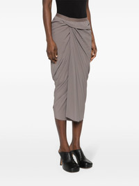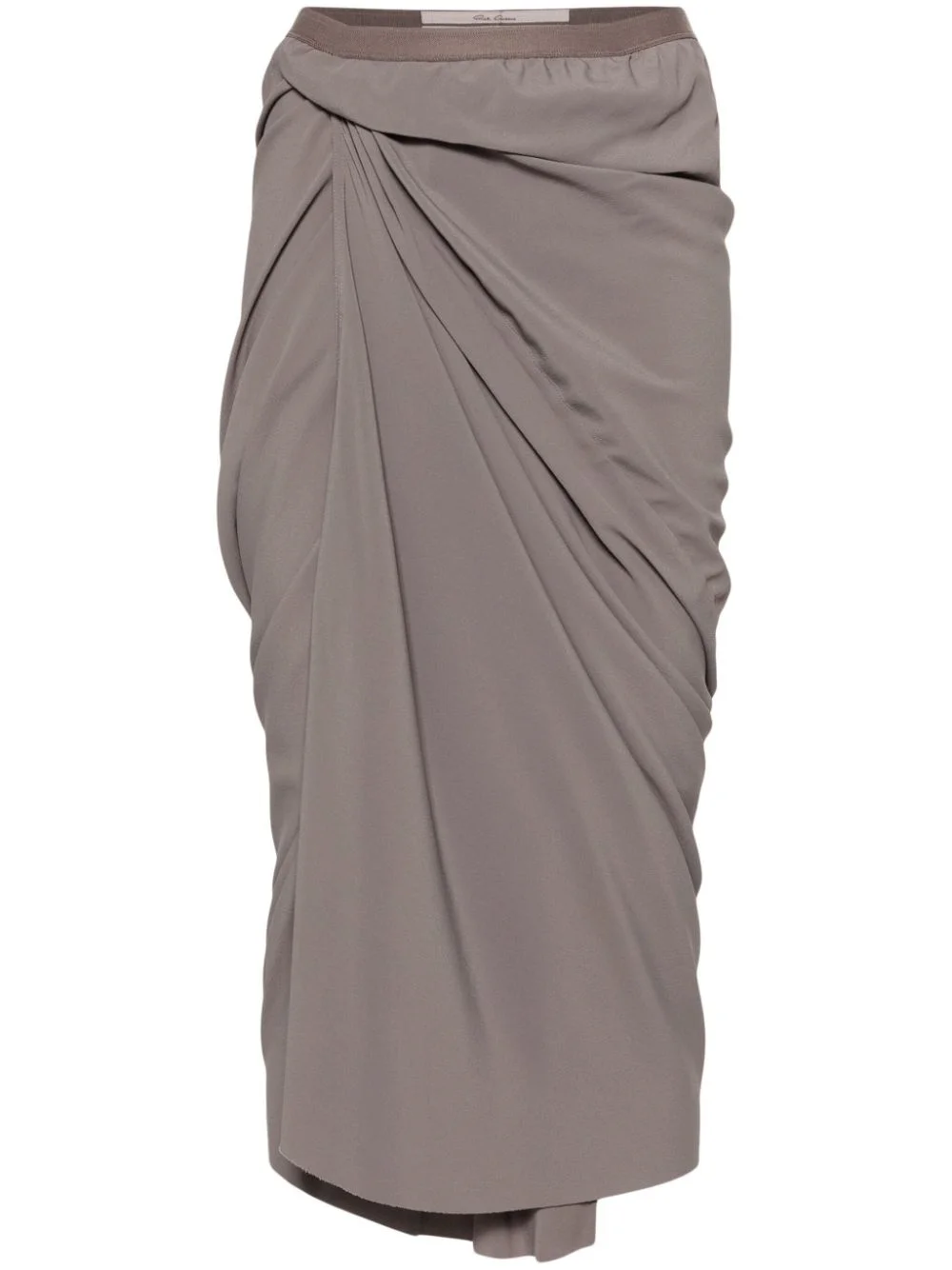 wrap midi skirt Highlights - Medium grey - Georgette crepe - Wrap design - Seam detailing - Side slit - Draped detailing - Internal logo tag - Mid-length - Raw-cut hem - Elasticated waistband Made in Italy Composition FSC Acetate 64%, Silk 36% SIZE & FIT Model measurements Height 5 ft 10 in(1.77 m) Bust/Chest 32.28 in(82 cm) Hips 35.03 in(89 cm) Waist 25.19 in(64 cm) FittingInformation This midi-length skirt is intended to be worn just below the waist The elasticated waist allows for a comfortable fit Made from a lightweight non-stretch fabric This piece fits true to size – take your usual size Washing instructions Dry Clean Only