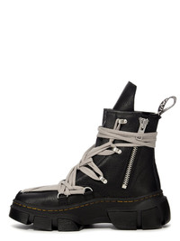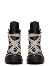 DR. MARTENS X RICK OWENS 1460 DMXL MEGA LACE BOOT IN BLACK COW LEATHER THESE DR. MARTENS ICONIC 1460 BOOTS ARE REIMAGINED BY RICK OWENS AND HAVE MEGA PEARL LACING AND PALLADIUM FINISH HARDWARE INCLUDING TUNNEL LOOPS AND SIDE ZIPPER. THE BOOT FEATURES AN EXTENDED GEOMETRIC TONGUE AND HAS A WOVEN DR MARTENS AIRWARE HEEL LOOP IN BLACK AND PEARL. THEY HAVE A RUBBER DMXL SOLE WITH THE DR MARTENS YELLOW WELT STITCH DMXL OUTSOLE, WHICH DROPPED AT THE END OF 2023, IS AN EXAGGERATED INTERPRETATION OF THE CLASSIC DR.MARTENS SOLEFORMED FROM A LIGHTWEIGHT EVA COMPOUND BASE WITH RESILIENT PVC PODS - COLOR: BLACK - UPPER: 100% COW LEATHER - LEG LINING: 100% COW LEATHER- UPPER LINING: 72% POLYESTER + 14% NYLON + 14% POLYURETHANE- SOLE 50% E.V.A + 50% POLIVINILCLORURO PLEASE NOTE THE SHOE SIZE LISTED ON THE PRODUCT DESCRIPTION PAGE CORRESPONDS TO UK SHOE SIZE WE STRONGLY RECOMMEND OUR CLIENTS TO CHECK THE SIZE CHART BEFORE PLACING AN ORDER TO AVOID ANY POTENTIAL INCONVENIENCE FEEL FREE TO CONTACT CUSTOMERCARE@RICKOWENS.EU FOR ANY ASSISTANCE