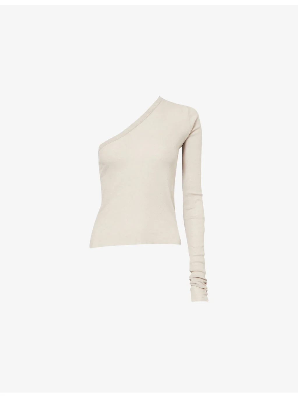 PRODUCT DETAILS - Rick Owens cotton top - 100% cotton - Regular fit, asymmetric neck, one long sleeve, raw trims - Hand wash - Made in Italy - True to size - Model is 5ft 10in/1.78m and wears a size UK 8 - Lightweight, stretchy Ref: R04583823