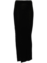Ziggy ribbed-knit maxi skirt Highlights - Black - Wool blend - Ribbed knit - High waist - Elasticated waistband - Side slit - Straight hem Made in Italy Composition Wool 97%, Polyamide 2%, Elastane 1% SIZE & FIT Model measurements Height 5 ft 9 in(1.75 m) Bust/Chest 31.88 in(81 cm) Hips 35.03 in(89 cm) Waist 23.22 in(59 cm) FittingInformation This midi-length skirt is intended to be worn just below the waist The elasticated waist allows for a comfortable fit Made with a lightweight knit, this piece offers some stretch This piece fits true to size – take your usual size Washing instructions Hand Wash