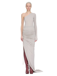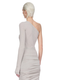 RICK OWENS FW25 CONCORDIANS ZIGGY T IN PEARL RAININO JERSEY THIS ZIGGY T FINISHES ABOVE-HIP LENGTH AND HAS AN ASYMMETRICAL, SINGLE SHOULDER NECKLINE WITH ONE LONG SLEEVE THIS MEDIUMWEIGHT AND FLUID VISCOSE AND WOOL BLEND JERSEY HAS A SOFT, WARM HANDFEEL AND A SLIGHTLY HAIRY SURFACE TEXTURE WE STRIVE TO KEEP OUR PRODUCTION AS LOCAL AS POSSIBLE. THE FULL MANUFACTURING CYCLE OF THIS PRODUCT, FROM THE MATERIAL KNITTING TO SEWING AND FINISHING, WAS UNDERTAKEN CLOSE TO OUR HOME BASE IN CONCORDIA, ITALY THIS JERSEY IS MADE FROM FSC® CERTIFIED VISCOSE AND RWS CERTIFIED WOOL COLOR: PEARL MATERIAL: 30% VISCOSE + 30% NYLON + 20% ANGORA + 20% WOOL MODEL IS 181CM TALL MODEL WEARS SIZE 40