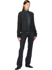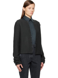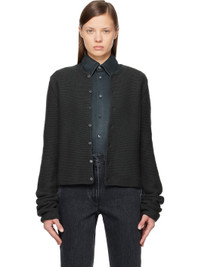 Oversized knit wool cardigan. · Rib-knit round neck · Button closure · Dropped shoulders · Mother-of-pearl hardware Supplier color: Plombe 100% wool. Made in Italy 252661F095003