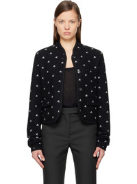Lightweight felted wool jacket. · Floral pattern embroidered throughout · Stand collar · Button closure · Welt pocket at chest · Flap pockets at waist · Corozo hardware Supplier color: Black flowers dense 100% wool. Made in Austria 252661F063002