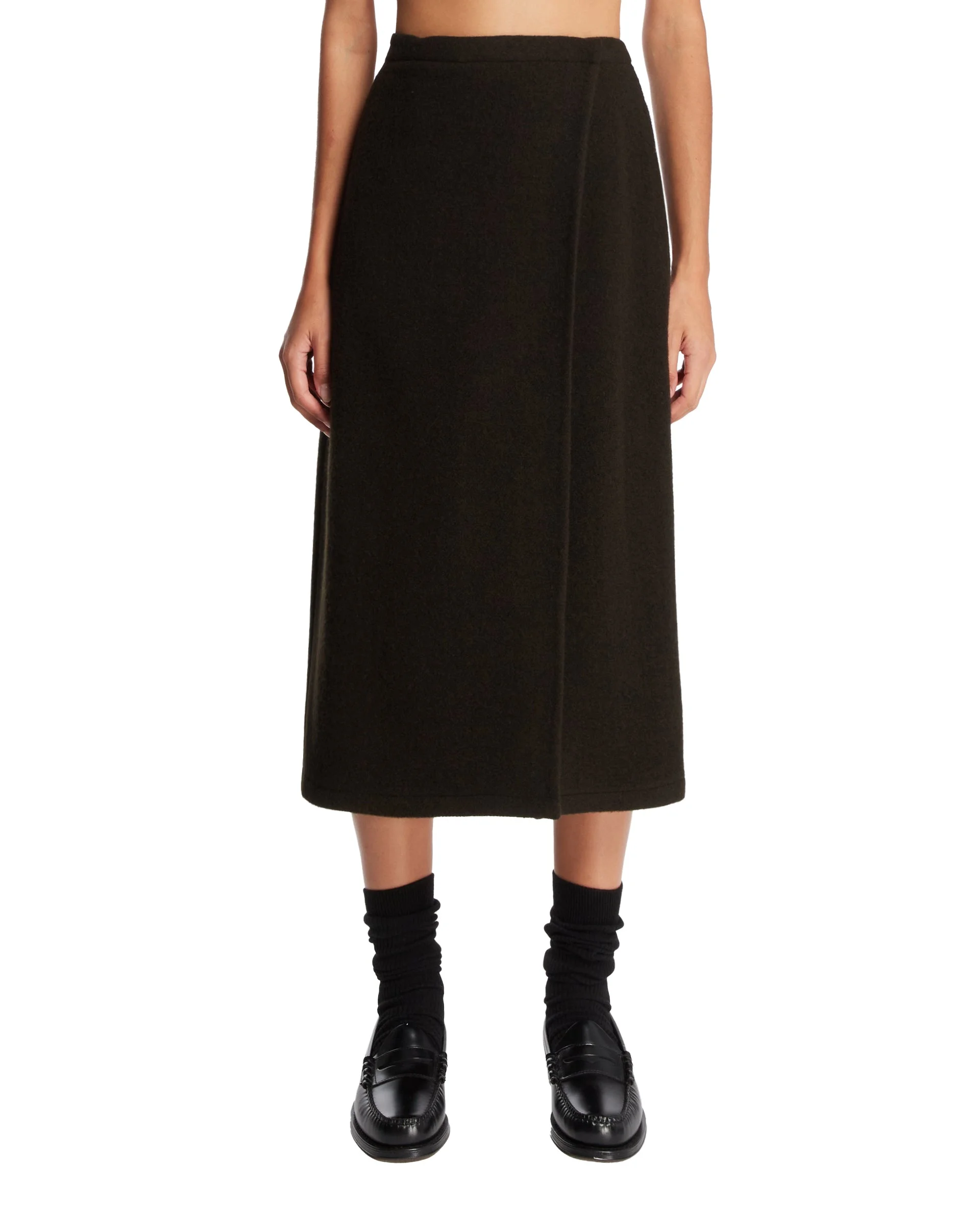 Brown Wool Midi Wrap Skirt