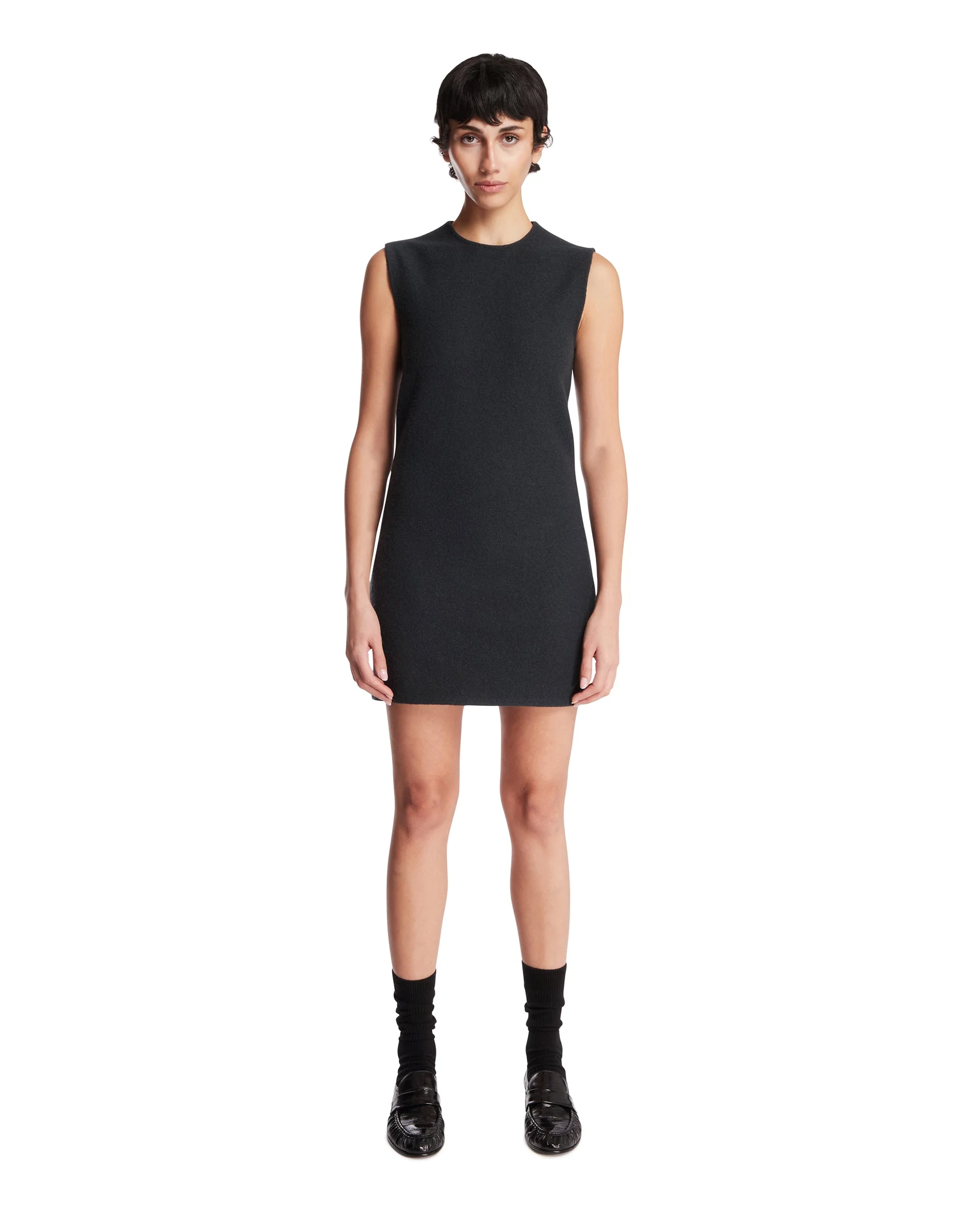 Rier Gray Wool Short Dress. Gray wool, crew neck, sleeveless, short skirt. Back zip fastening, regular fit. Anis is 178 cm and she is wearing size S. DETAILS Model: DRS4WLTPLO Composition: 100% Virgin Wool Made in: ITALY Season: FW25-26
