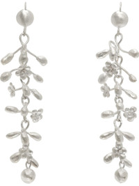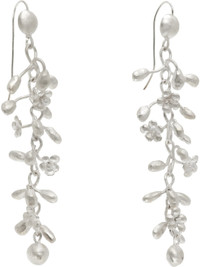 Pair of handcrafted mismatched drop earrings in sterling silver. · Floral graphics throughout · Hook-eye fastening · H3" x W0.75" Supplier color: Silver 925 sterling silver. Made in France 252661F009002